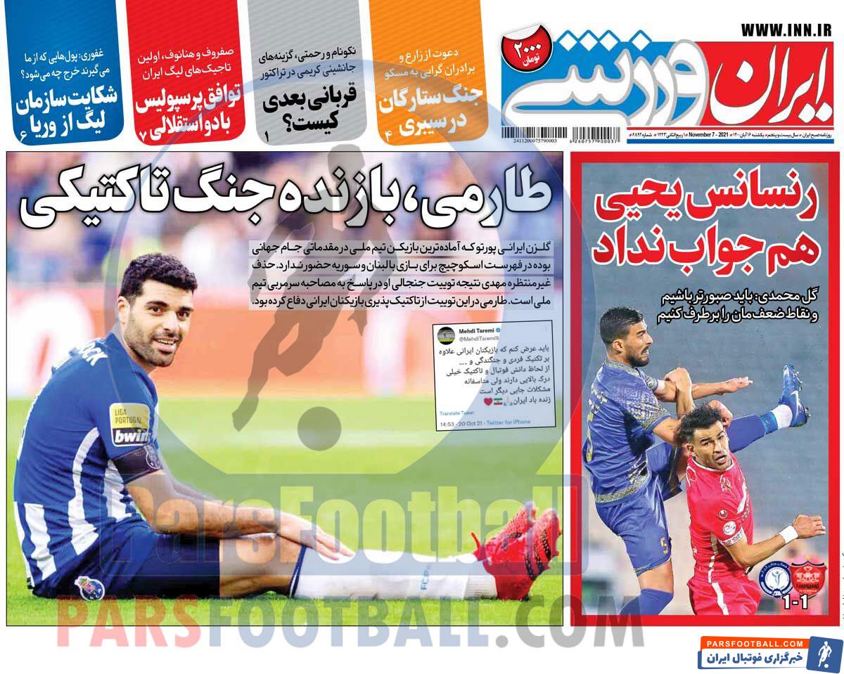 مرور عناوین مهم روزنامه ایران ورزشی یکشنبه 16 آبان ماه 1400