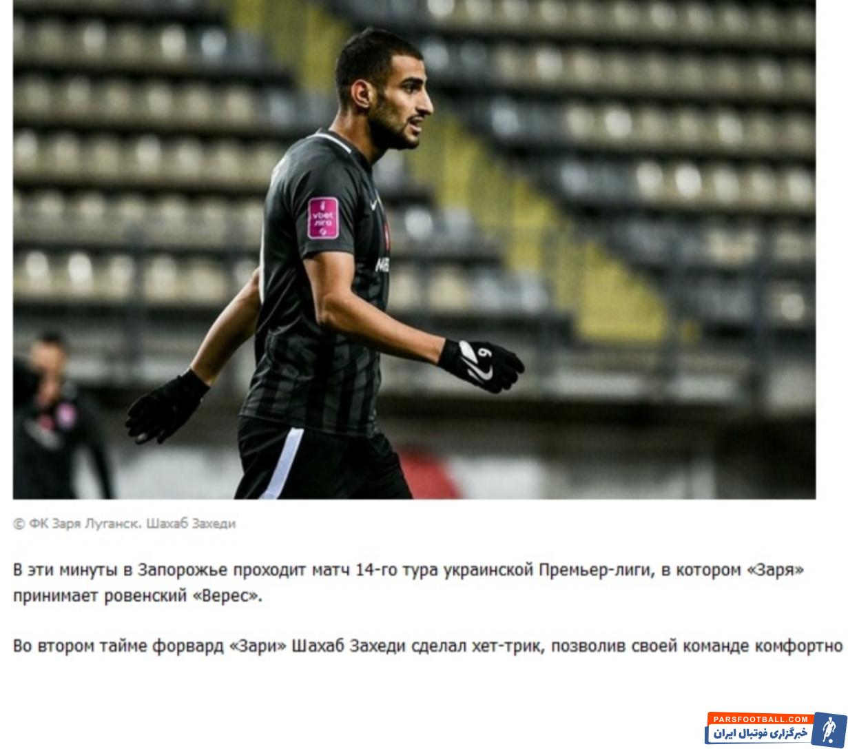 سایت اسپورت اوکراین : جادوی زاهدی در لیگ ادامه دارد و با هت تریک برای زوریا این تیم را برنده میدان کرد