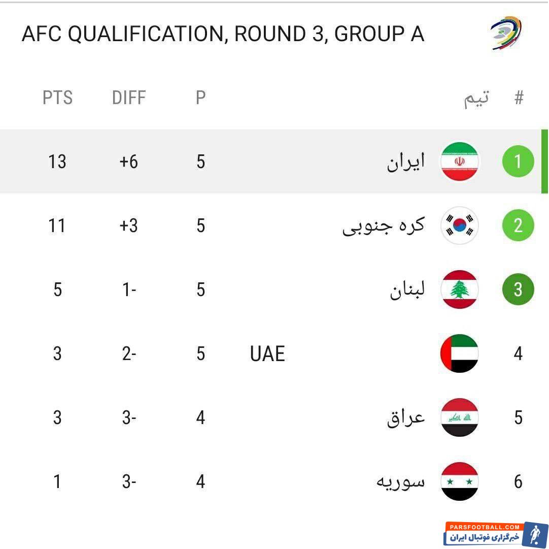ایران با ۱۳ امتیاز صدرنشین گروه B پس از برد 2 بر 1 مقابل لبنان
