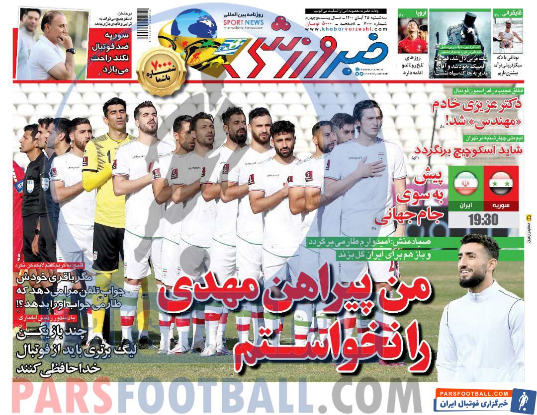عناوین روزنامه خبر ورزشی سه شنبه ۲۵ آبان ماه به شرح زیر است :