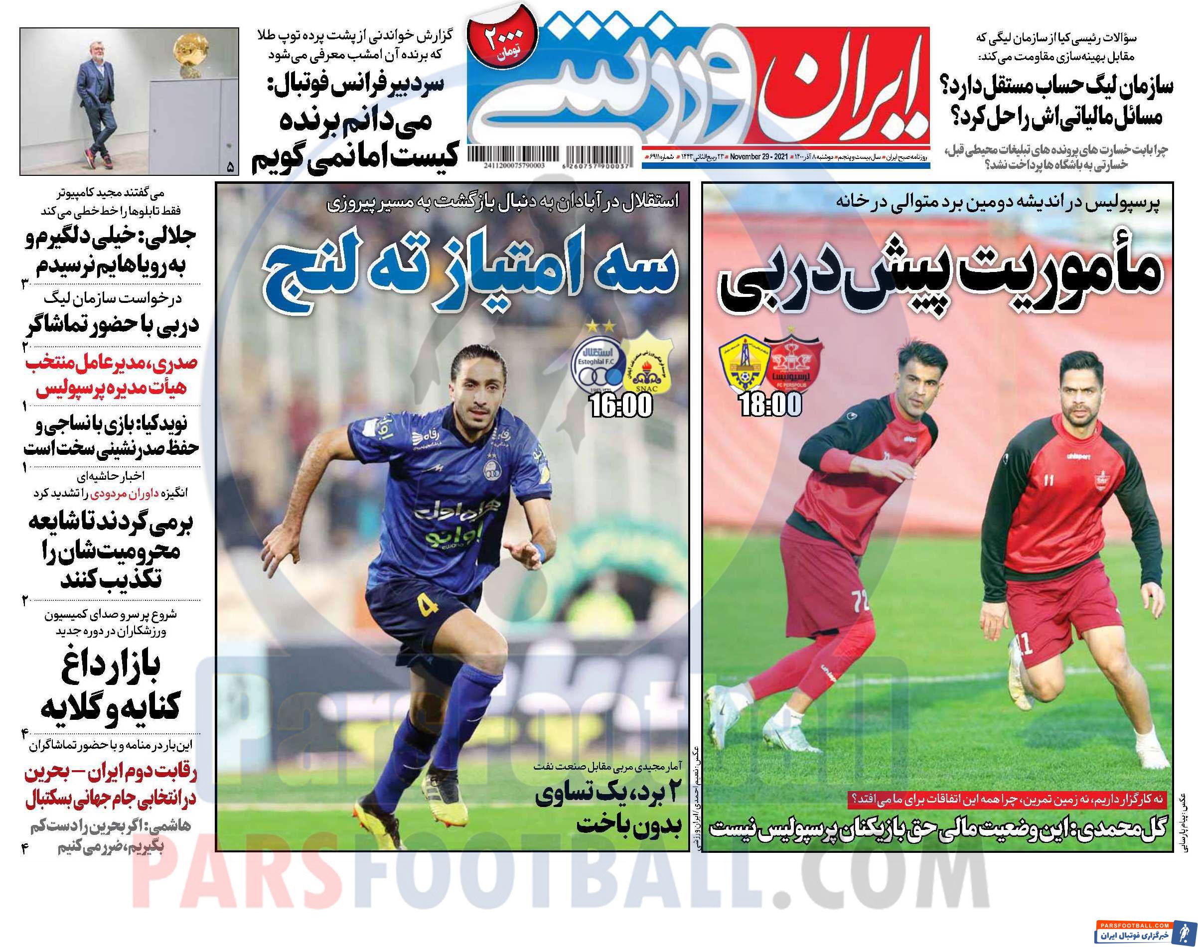 مرور عناوین مهم روزنامه ایران ورزشی دوشنبه 8 آذر ماه 1400