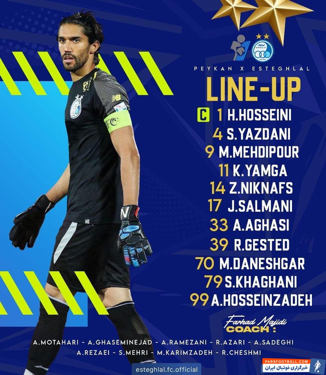 فرهاد مجیدی ۱۱ بازیکن استقلال برای مصاف با پیکان را به شرح زیر معرفی کرد.