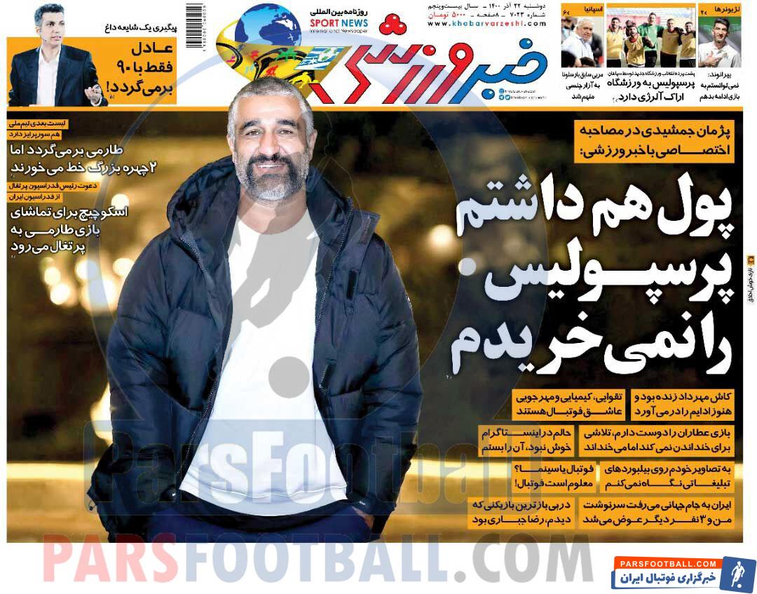 مرور عناوین مهم روزنامه خبر ورزشی دوشنبه 22 آذر ماه 1400