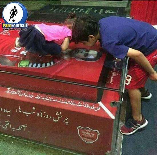 تصویری از هانی و هانا فرزندان هادی نوروزی روی قبر پدر در سالگرد کاپیتان پرسپولیس
