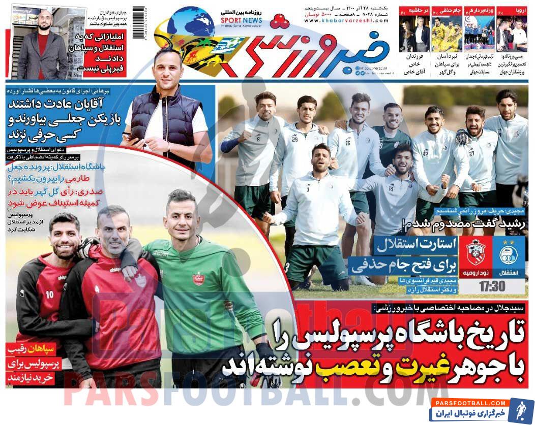 عناوین روزنامه خبر ورزشی یکشنبه ۲۸ آذر ماه به شرح زیر است :