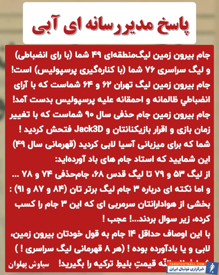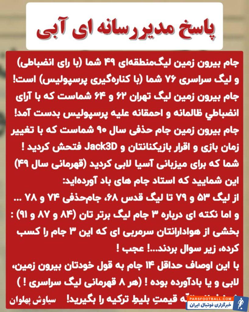 سیاوش پهلوان ، تاریخ نگار و هوادار معروف پرسپولیس هم در پاسخ به این صحبت ها نوشت :