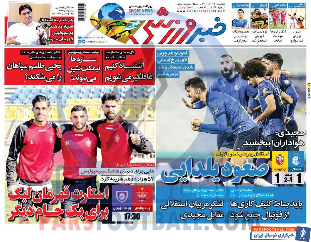 عناوین روزنامه خبر ورزشی دوشنبه ۲۹ آذر ماه به شرح زیر است :