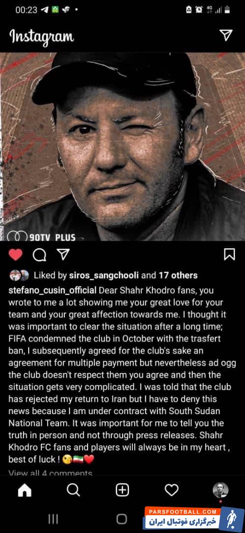 کوزین مربی ایتالیایی سابق شهر خودرو شخصاً به حواشی و خبرها درباره بازگشت احتمالیاش به تیم مشهدی واکنش نشان داد.