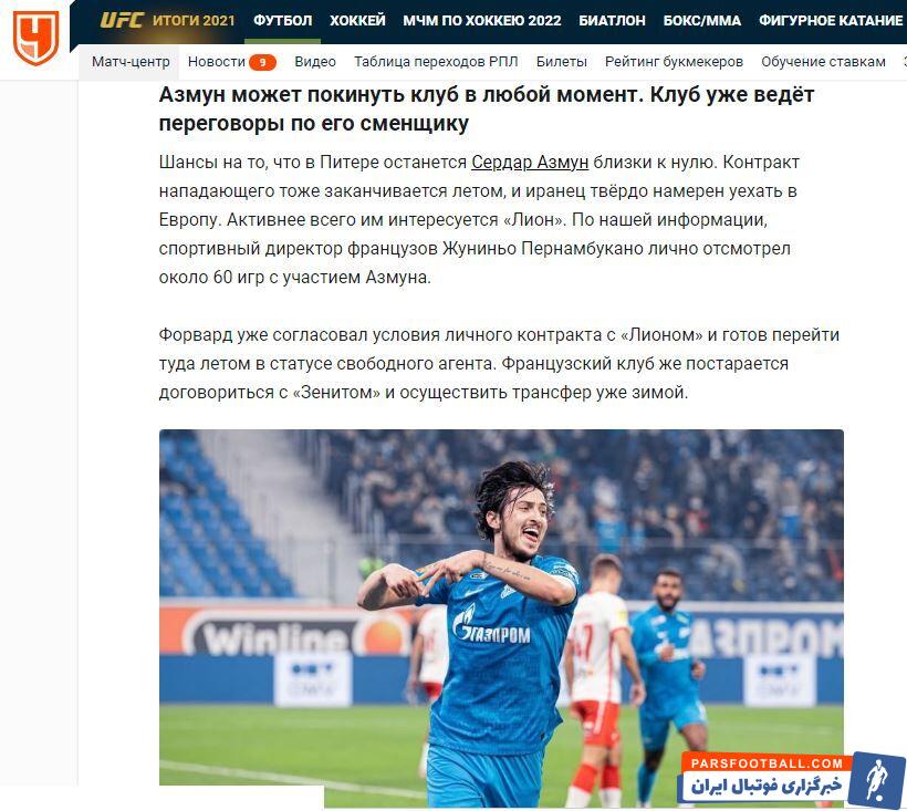 طبق گزارشهای رسیده جونینیو مدیر ورزشی باشگاه لیون ۶۰ بازی سردار آزمون با پیراهن زنیت را به خوبی تماشا کرده و انتخاب نهایی را کرده است.