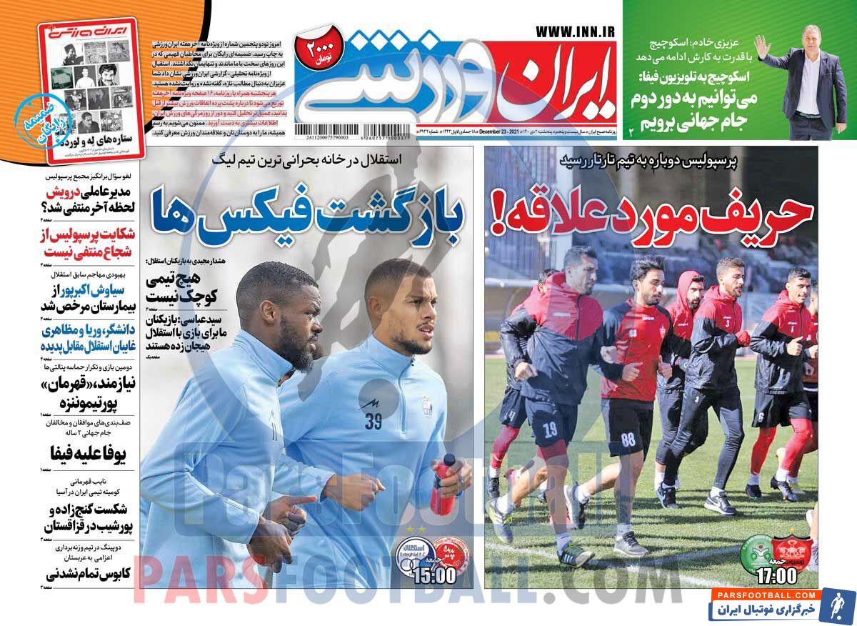 مرور عناوین مهم روزنامه ایران ورزشی پنجشنبه 2 دی ماه 1400