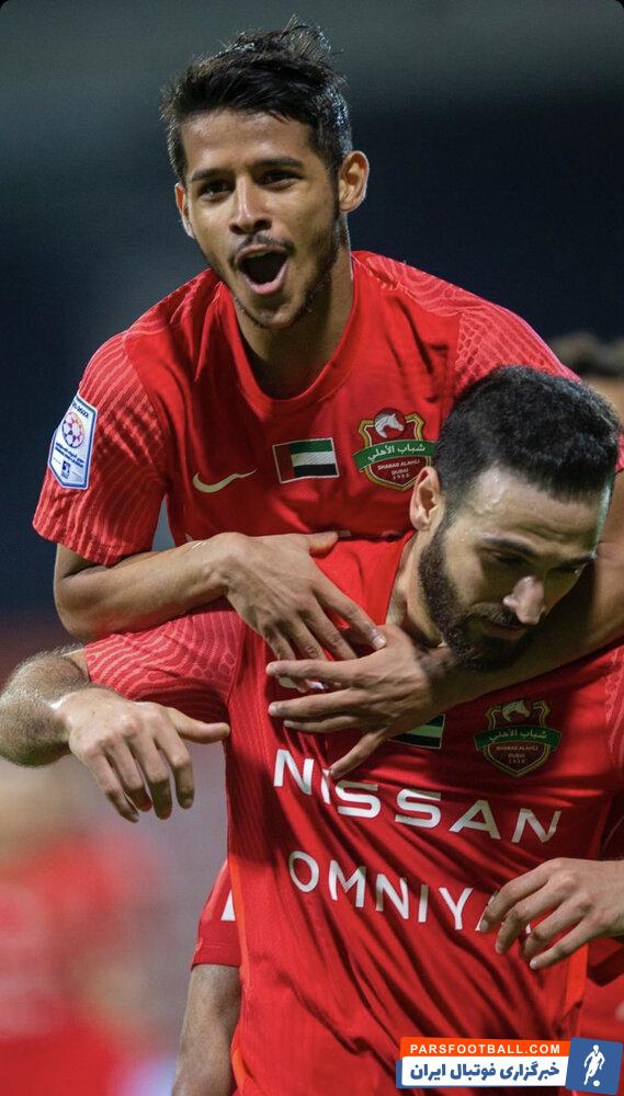شادی گل احمد نوراللهی در کنار مهدی قایدی در شب پیروزی شباب الاهلی امارات