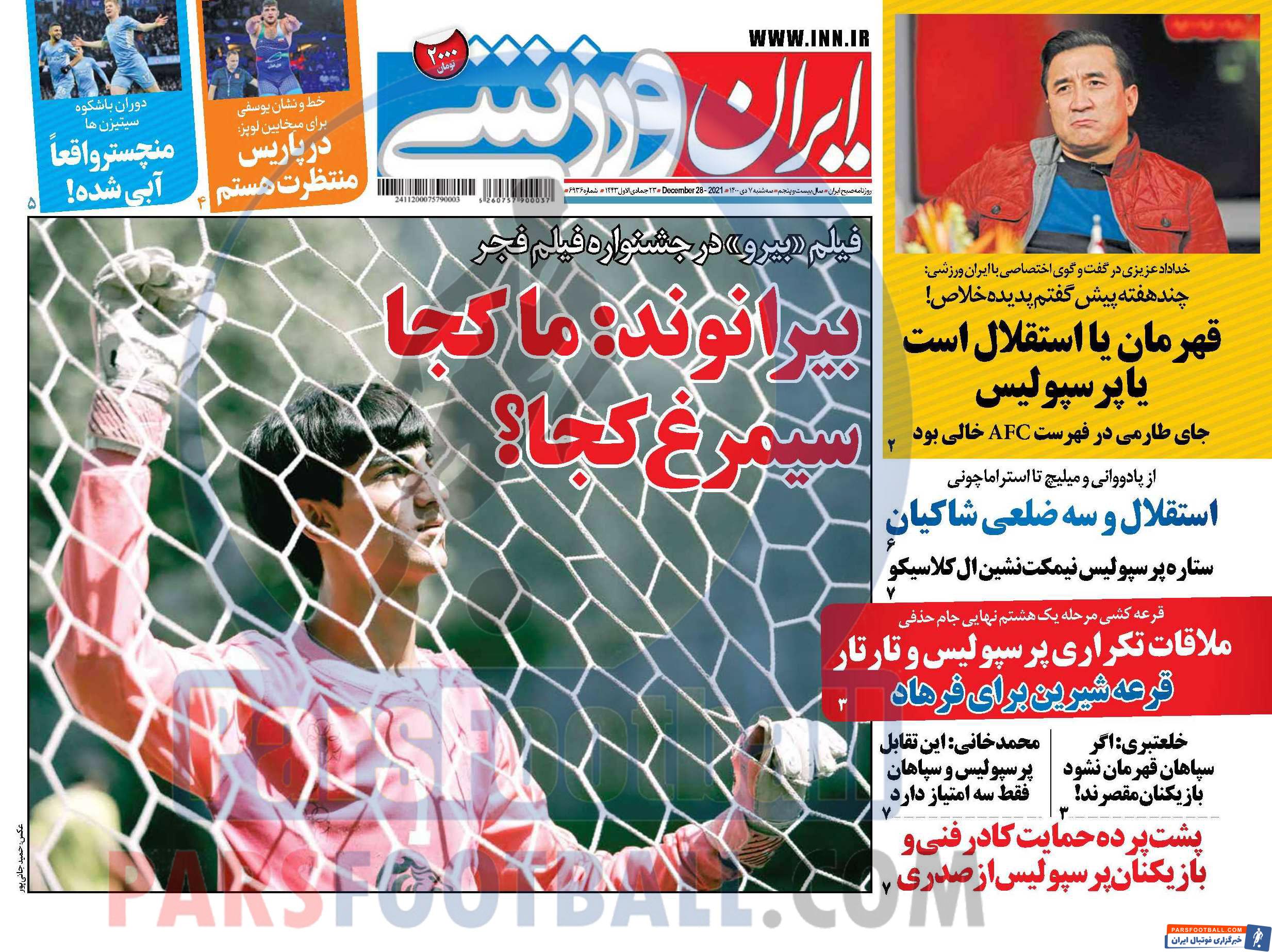 عناوین روزنامه ایران ورزشی سه شنبه ۷ دی ماه به شرح زیر است :