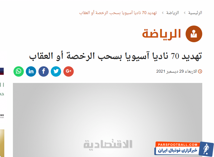 روزنامه الاقتصادیه عربستان اعلام کرد ۷۰ باشگاه در آسیا در خطر حذف از لیگ قهرمانان آسیا و یا جرایم انضباطی از سوی AFC هستند.