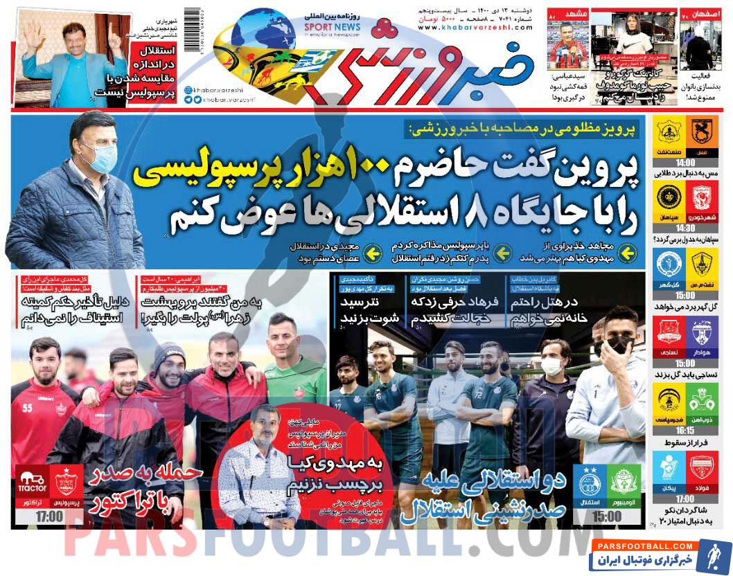 مرور عناوین مهم روزنامه خبر ورزشی دوشنبه 13 دی ماه 1400