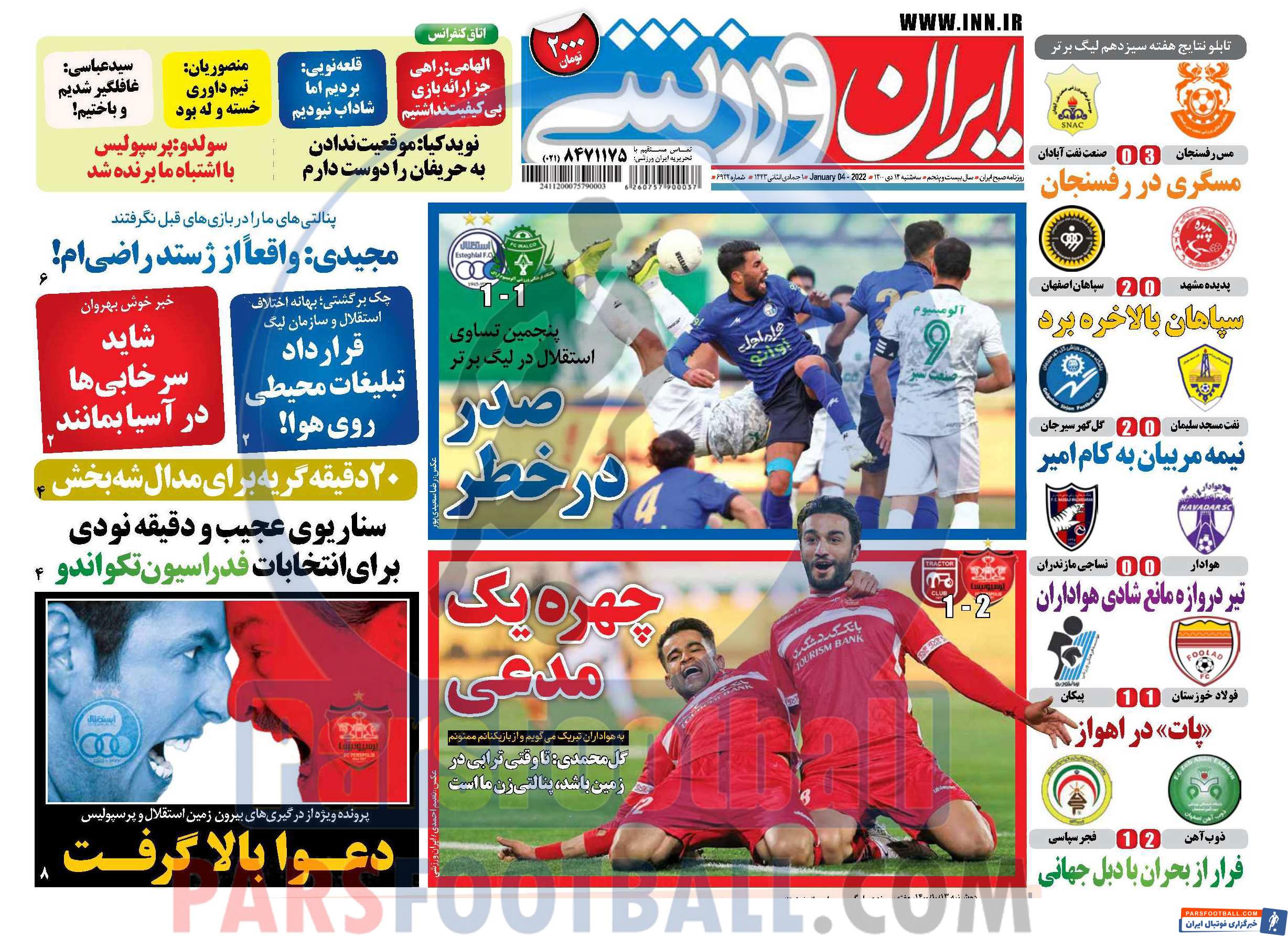 عناوین روزنامه ایران ورزشی سه شنبه ۱۴ دی ماه به شرح زیر است :