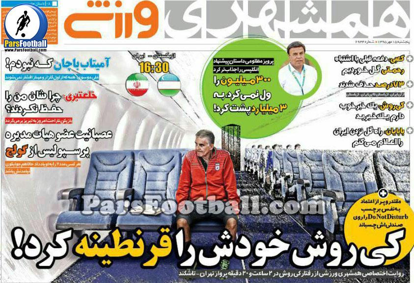 روزنامه همشهری ورزشی پنجشنبه ۱۵ مهر ۹۵ | کی روش خودش را قرنطینه کرد!