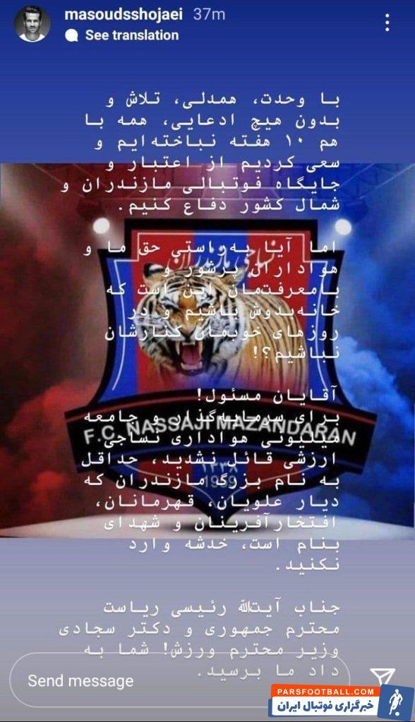 مسعود شجاعی ستاره باتجربه و کاپیتان نساجی در پیامی اینستاگرامی نسبت به این وضعیت گلایه کرده و البته اشارهای هم به شرایط خوب فنی تیم داشته است؛ شجاعی در ستایش عملکرد فنی نساجی در هفتههای اخیر نوشته: