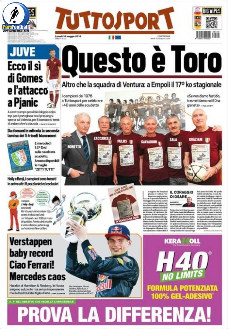 عناوین روزنامه توتو اسپورت ایتالیا ۲۷ اردیبشت۹۵