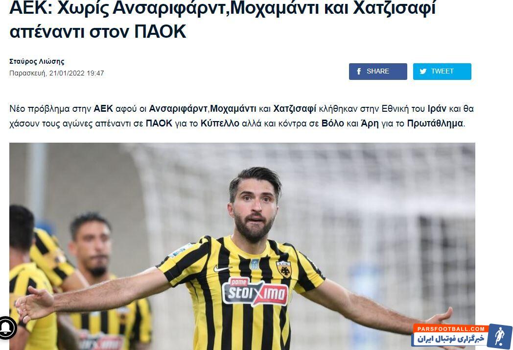 باشگاه آاک یونان از دعوت شدن کریم انصاری فرد، احسان حاج صفی و میلاد محمدی به اردوی تیم ملی کشورمان خبر داد. نشریه «fosonline» یونان به مشکل بزرگ آاک با دعوت شدن ۳ بازیکن ایرانی در اوضاع سخت تیم پرداخت. این رسانه درباره اسکوچیچ نوشت: