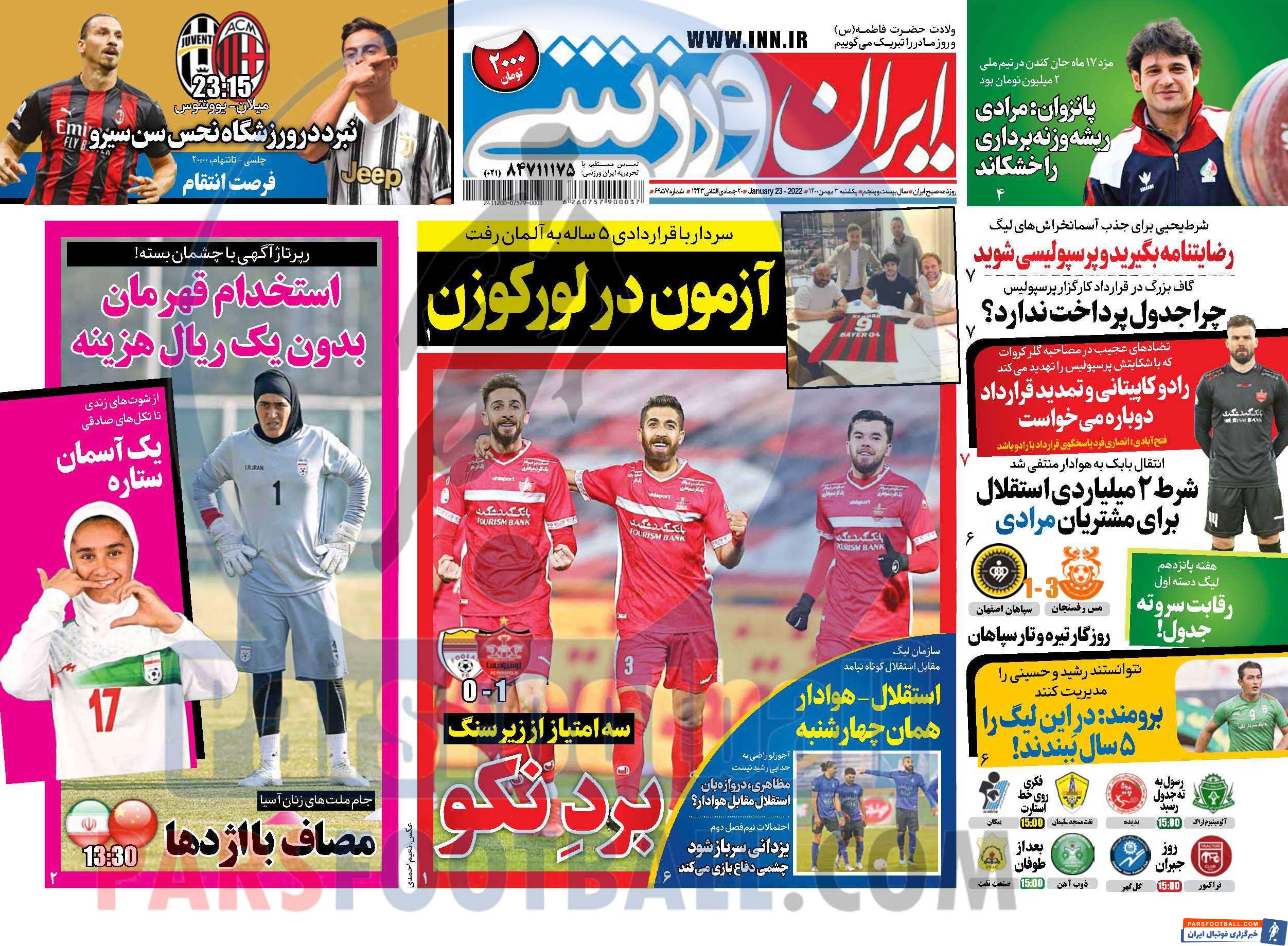 عناوین روزنامه ایران ورزشی یکشنبه ۳ بهمن ماه به شرح زیر است :