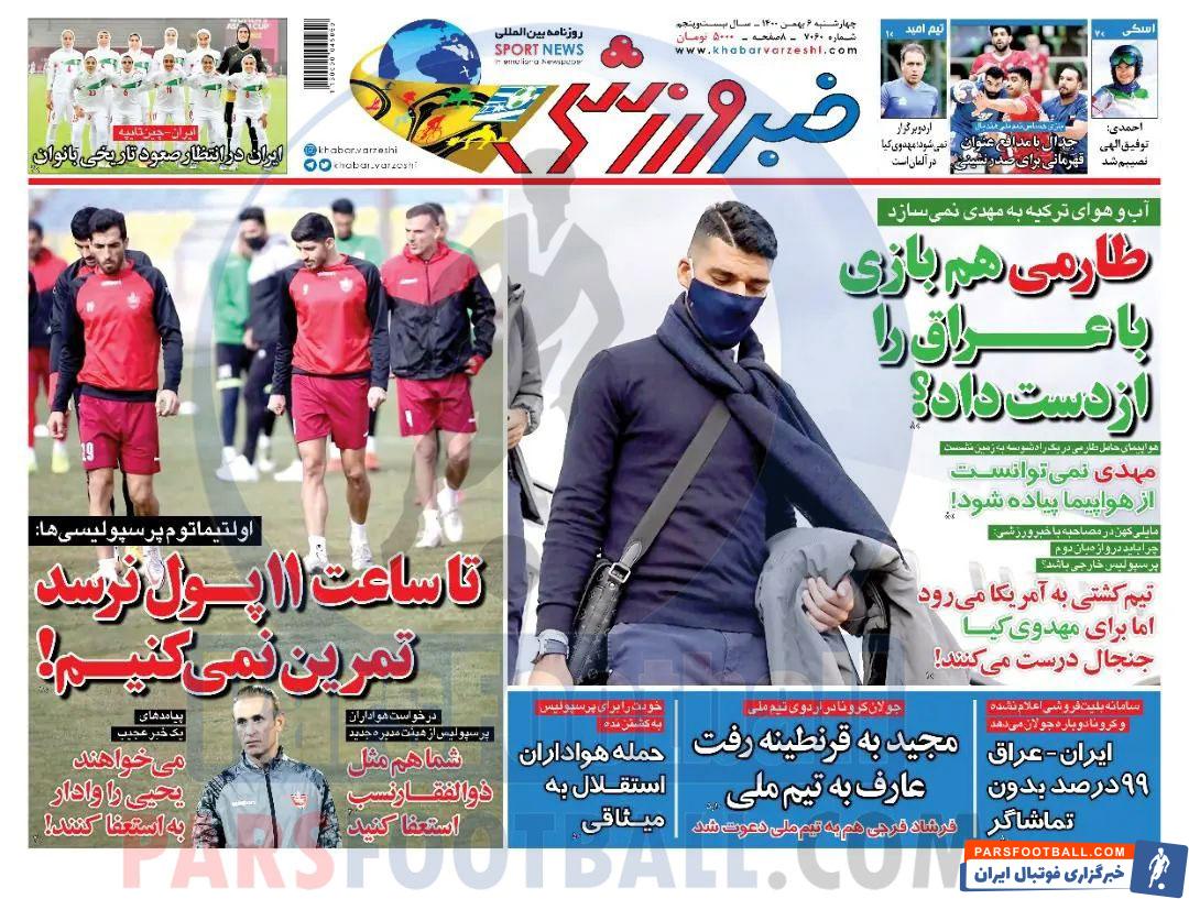 عناوین روزنامه خبر ورزشی چهارشنبه ۶ بهمن ماه به شرح زیر است :