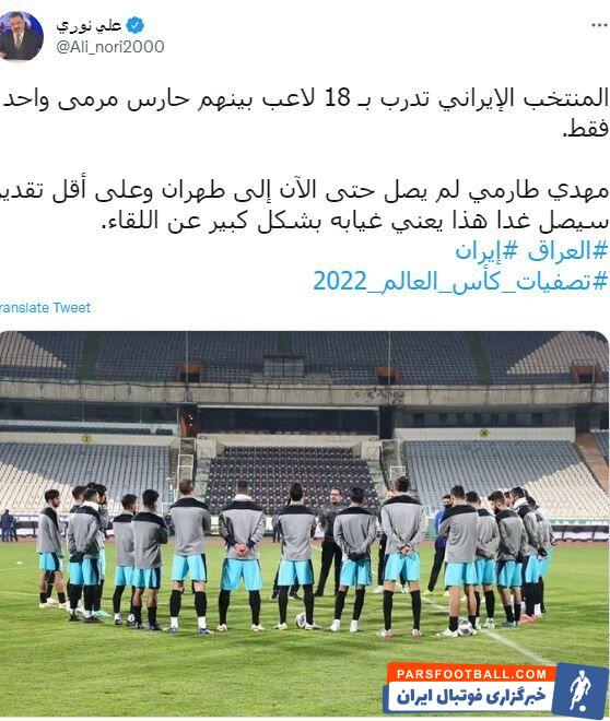 در همین رابطه علی نوری مجری و خبرنگار سرشناس عراقی در توئیتر خود از وضعیت تیم ملی ایران، نوشت:
