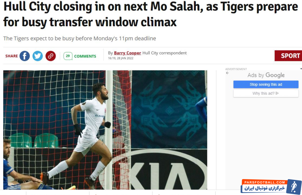 «هال سیتی امیدوار است تا پیش از پایان مهلت نقل و انتقالات روز دوشنبه، چهار بازیکن جدید را به خدمت بگیرد زیرا ایلیجالی به دنبال تقویت تیم برای نیم فصل دوم است. آلوارادزه سرمربی جدید هال سیتی پیش از این شاهد آمدن رگان اسلیتر از شفیلد یونایتد بوده است و بلافاصله بعد از او اللهیار صیادمنش، بازیکن جوان ایرانی که ایلیجالی به او لقب محمد صلاح بعدی را داده است.»