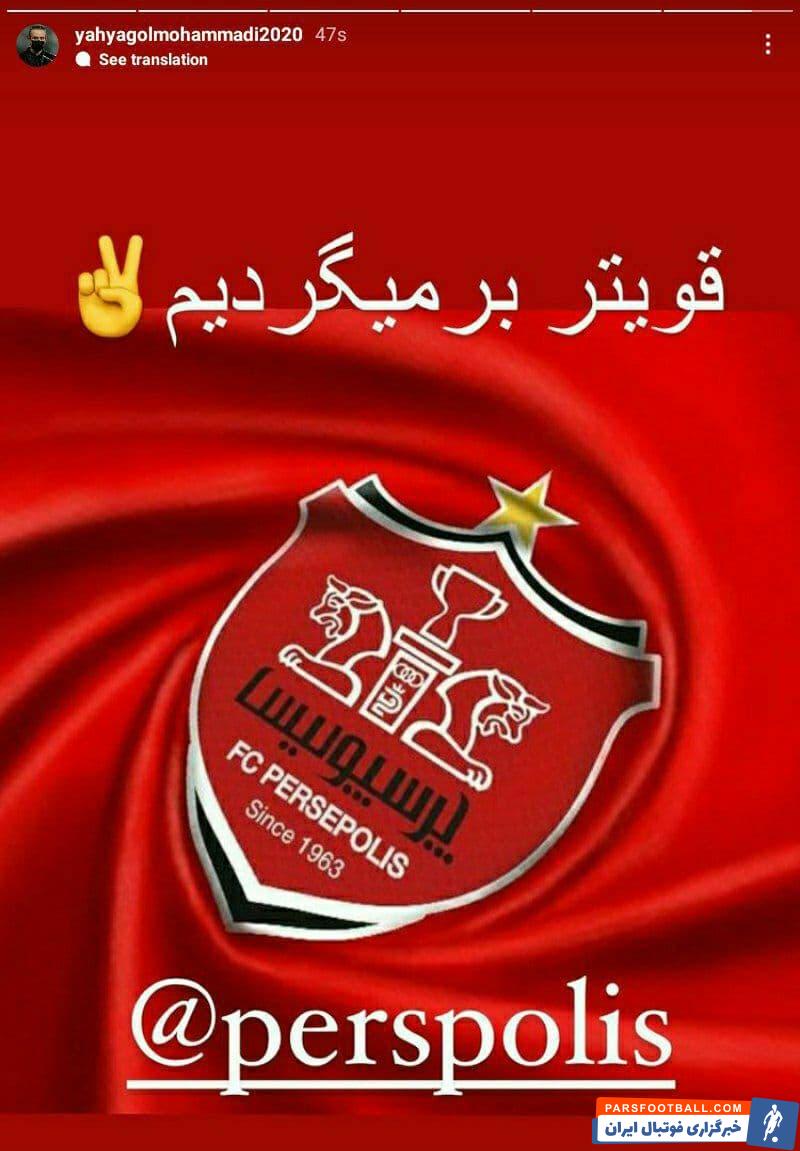 استوری حماسی یحیی گل محمدی برای هواداران پرسپولیس + سند