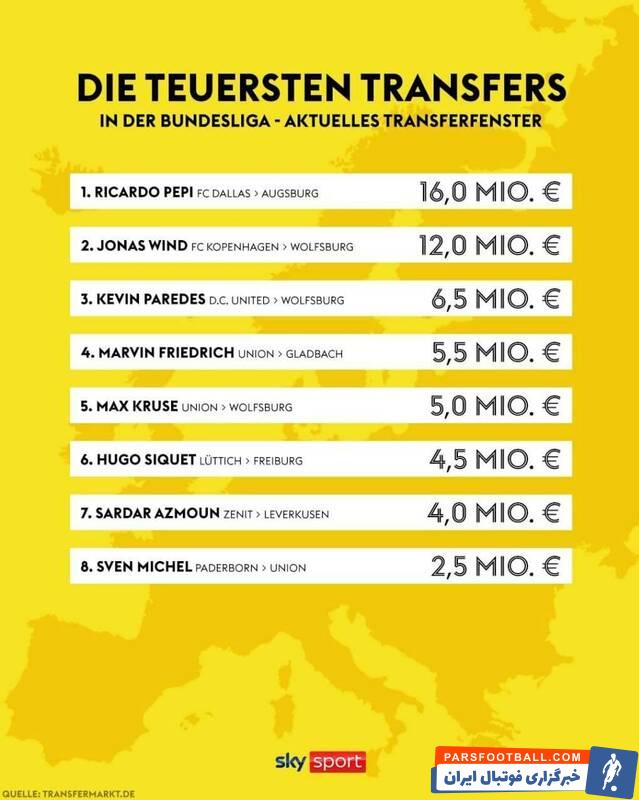 سردار آزمون ستاره تیم ملی کشورمان جزو گران ترین انتقال های زمستانی بوندسیلگا ایستاد.