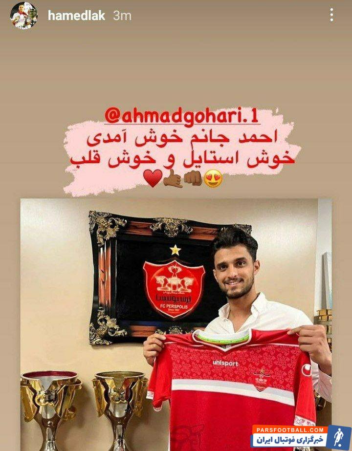 پس از رسمی شدن حضور احمد گوهری در پرسپولیس حامد لک سنگربان اول سرخ ها در اینستاگرام به خرید جدید باشگاه خوشامد گفت و او را ستود.