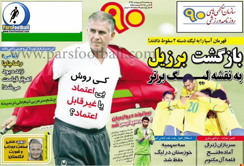 روزنامه نود ۲۸ اردیبهشت|بازگشت برزیل به نقشه لیگ برتر|قهرمان آسیا را به لیگ دسته ۲ سقوط دادند!|کی روش بی اعتماد یا غیر قابل اعتماد؟