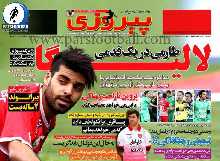 روزنامه پیروزی ۲۸ اردیبهشت|طارمی در یک قدمی لالیگا |بیرانوند۲ ساله بست |تبعیض و جفا تا کی ؟!
