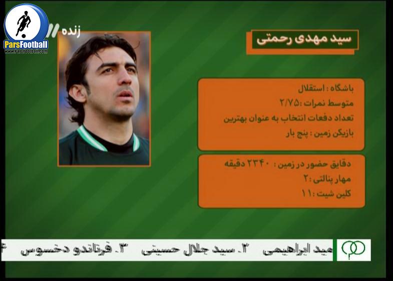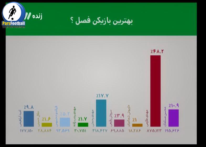 سوال مسابقه نظرسنجی درباره انتخاب بهترین بازیکن فصل پخش شد که شامل این گزینه ها می شود: ۱- امید ابراهیمی ۲- جلال حسینی ۳- فرناندو دخسوس ۴- مهدی رجب زاده ۵- مهدی رحمتی ۶- سروش رفیعی ۷- داریوش شجاعیان ۸- مهدی طارمی ۹- محسن مسلمان
