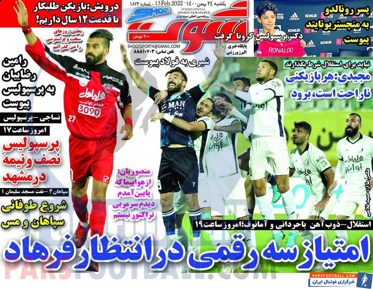 عناوین روزنامه شوت یکشنبه ۲۴ بهمن ماه به شرح زیر است :