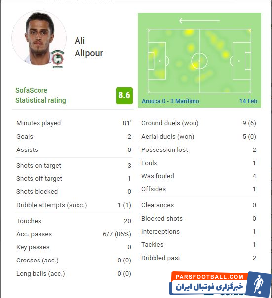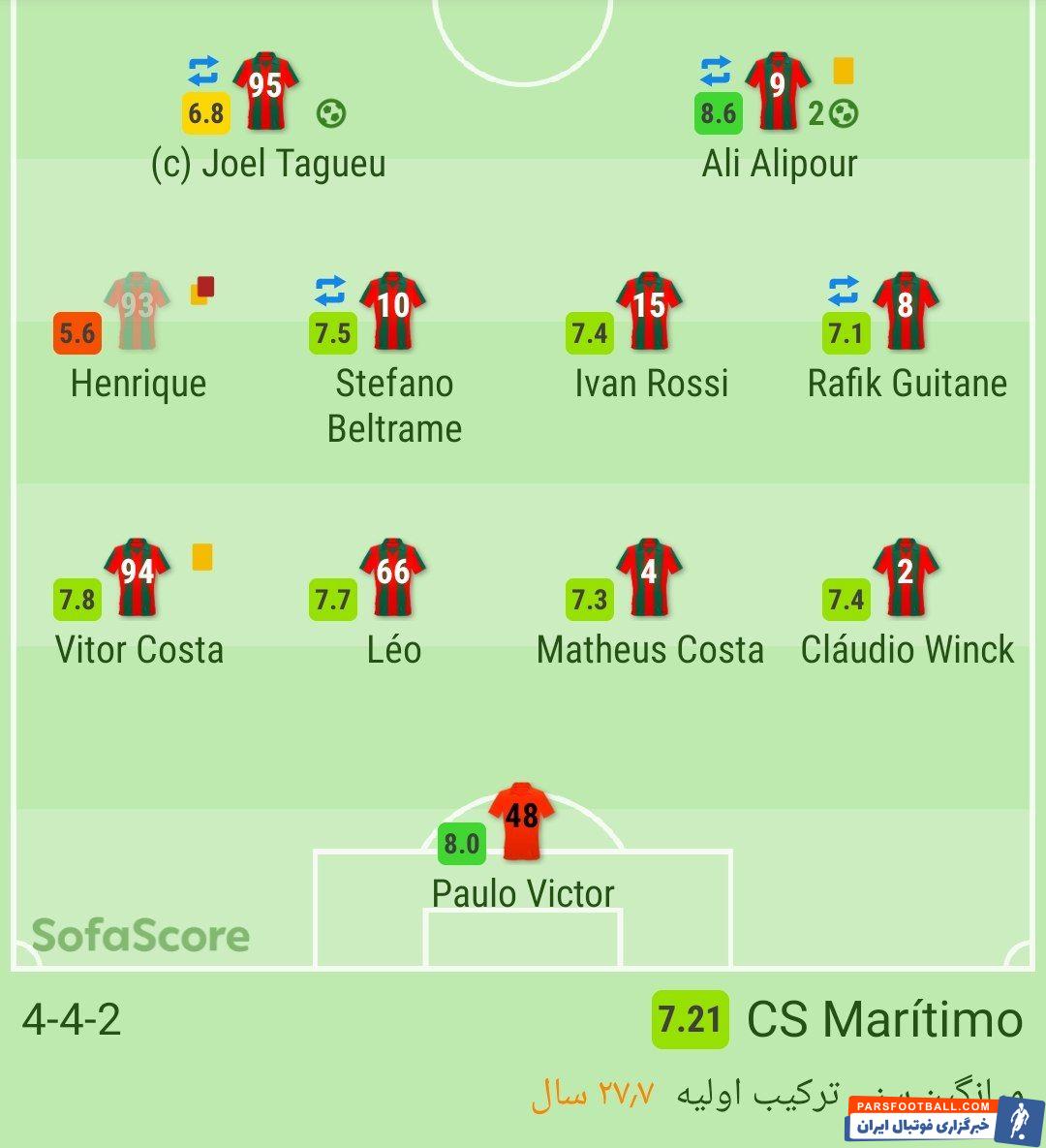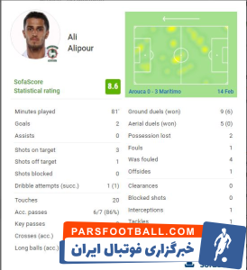 ماریتیمو - آروکا لیگ پرتغال ؛ علی علیپور بهترین بازیکن زمین شد