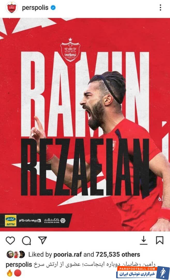رامین رضاییان ، خرید جدید سرخ ها رکورد صفحه مجازی پرسپولیس را شکست.