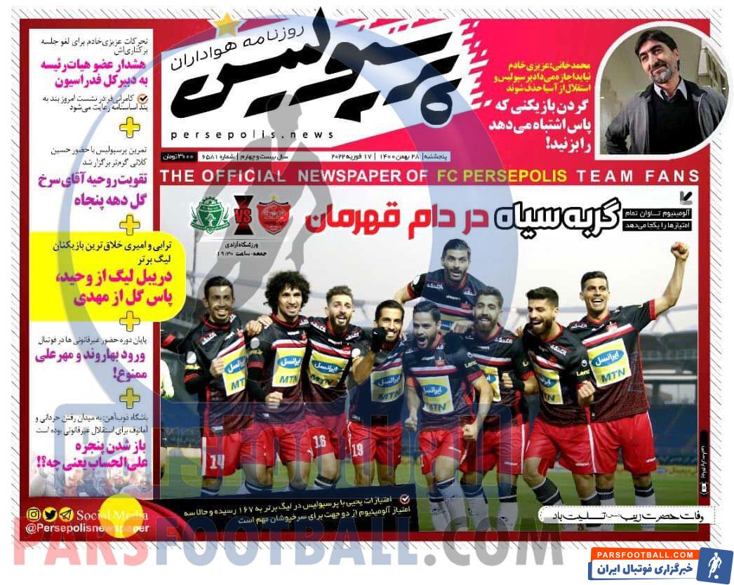 عناوین روزنامه پرسپولیس پنجشنبه ۲۸ بهمن ماه به شرح زیر است :