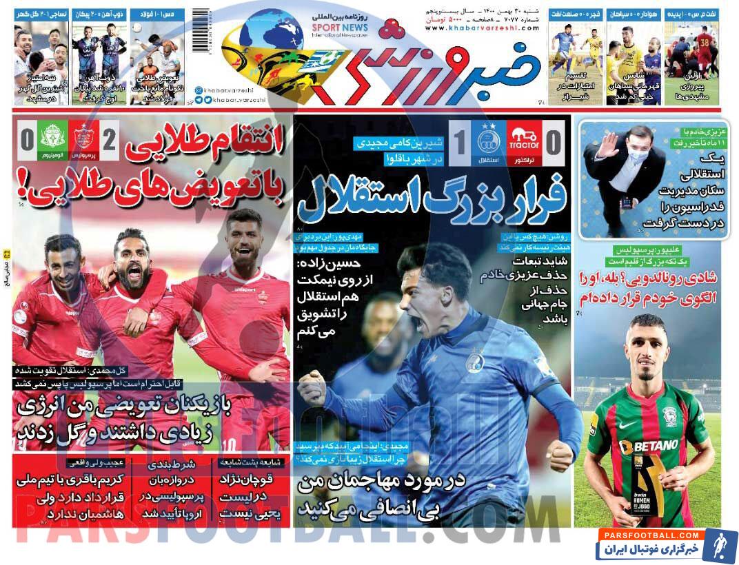 عناوین روزنامه خبر ورزشی شنبه ۳۰ بهمن ماه به شرح زیر است :