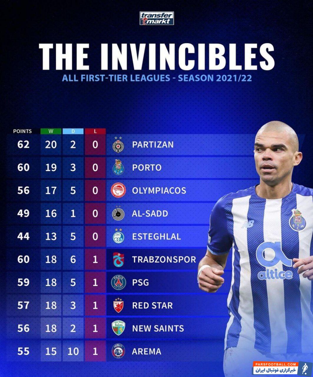 استقلال پنجمین تیم بدون شکست تیم جهان در لیگ داخلی