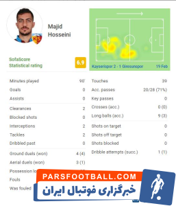مجید حسینی در هفته بیست و ششم سوپرلیگ ترکیه نمره قبولی گرفت