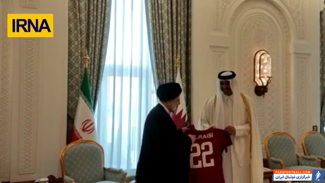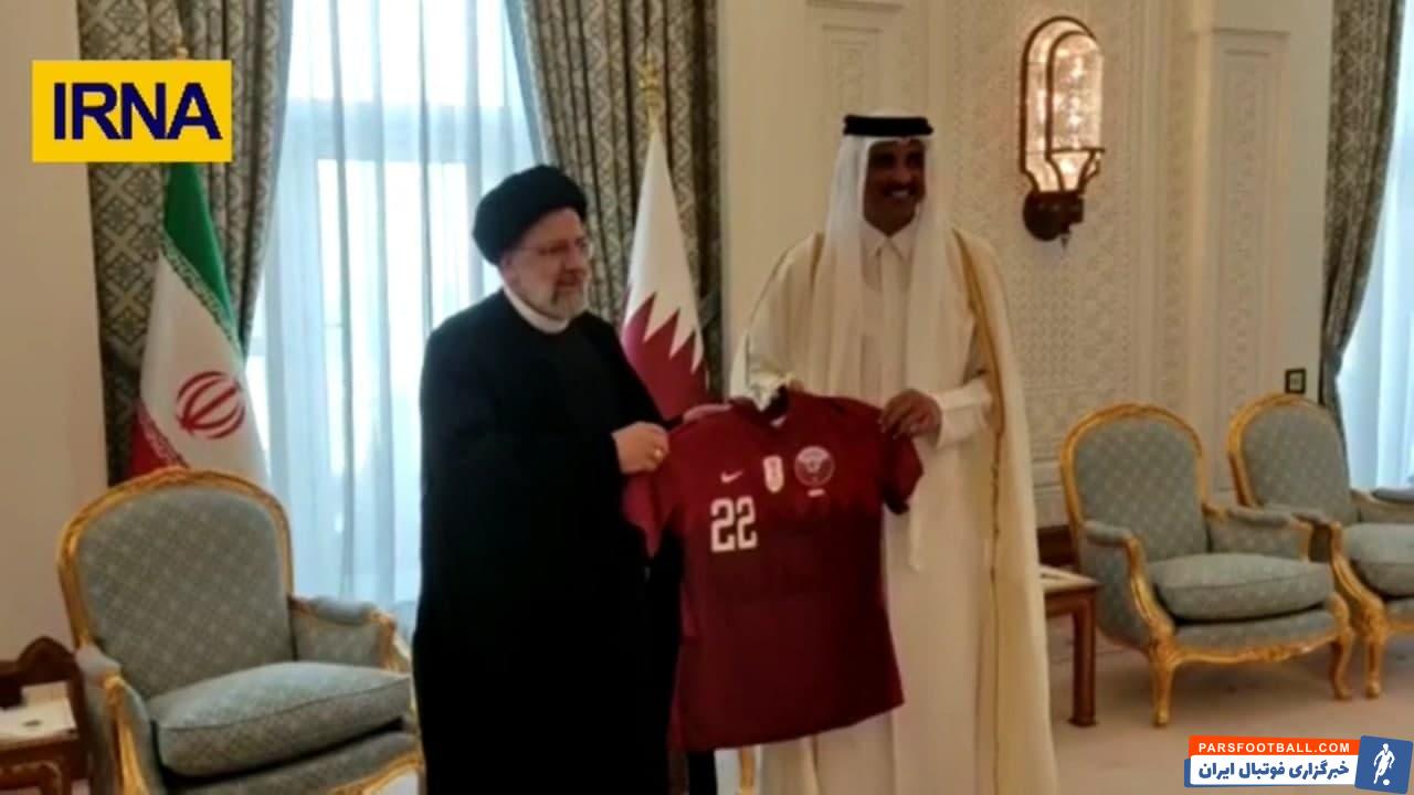 امیر قطر در دیداری با رئیس جمهور ایران، پیراهن تیم ملی این کشور را به سید ابراهیم رئیسی هدیه کرد.