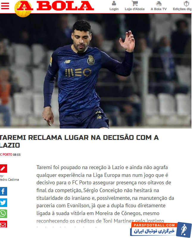 حالا و در آستانه بازی برگشت با لاتزیو، روزنامه A bola پرتغال خبر داد طارمی در مسابقه پنجشنبه در ایتالیا بازیکن فیکس پورتو خواهد بود. به نوشته این روزنامه، «سرجیو کونسیسائو» سرمربی تیم پورتو در قرار دادن طارمی در ترکیب اصلی تیمش تردید نمیکند. قرار است همان زوج خط حمله پورتو در بازی با موریرنسی یعنی طارمی – اوانیلسون مقابل لاتزیو به میدان بروند.