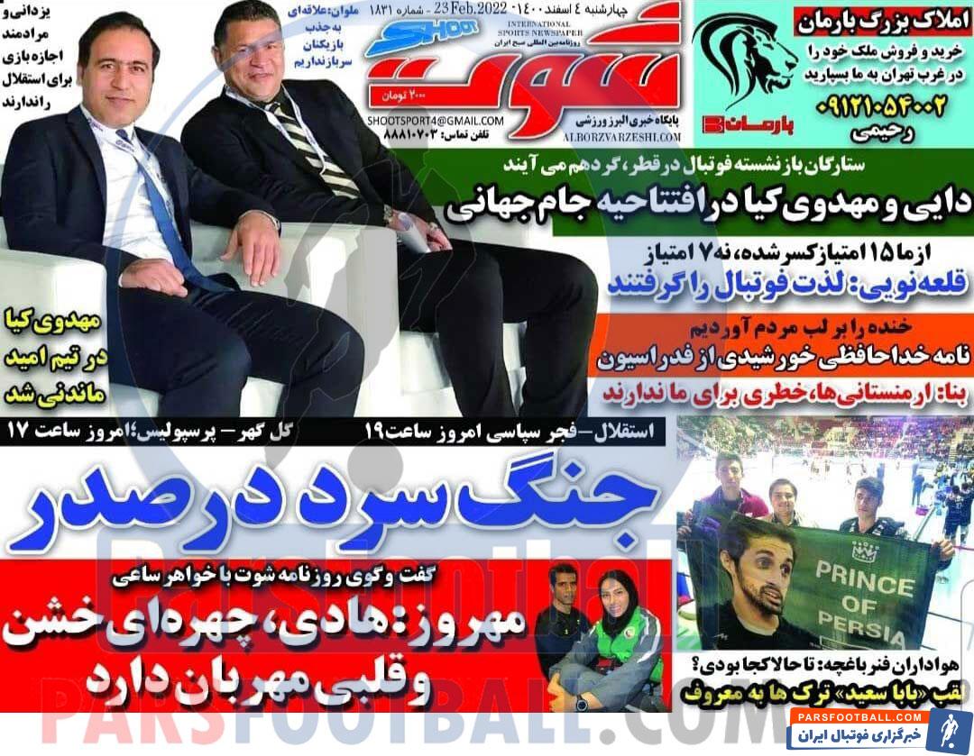 عناوین روزنامه شوت چهارشنبه ۴ اسفند ماه به شرح زیر است :