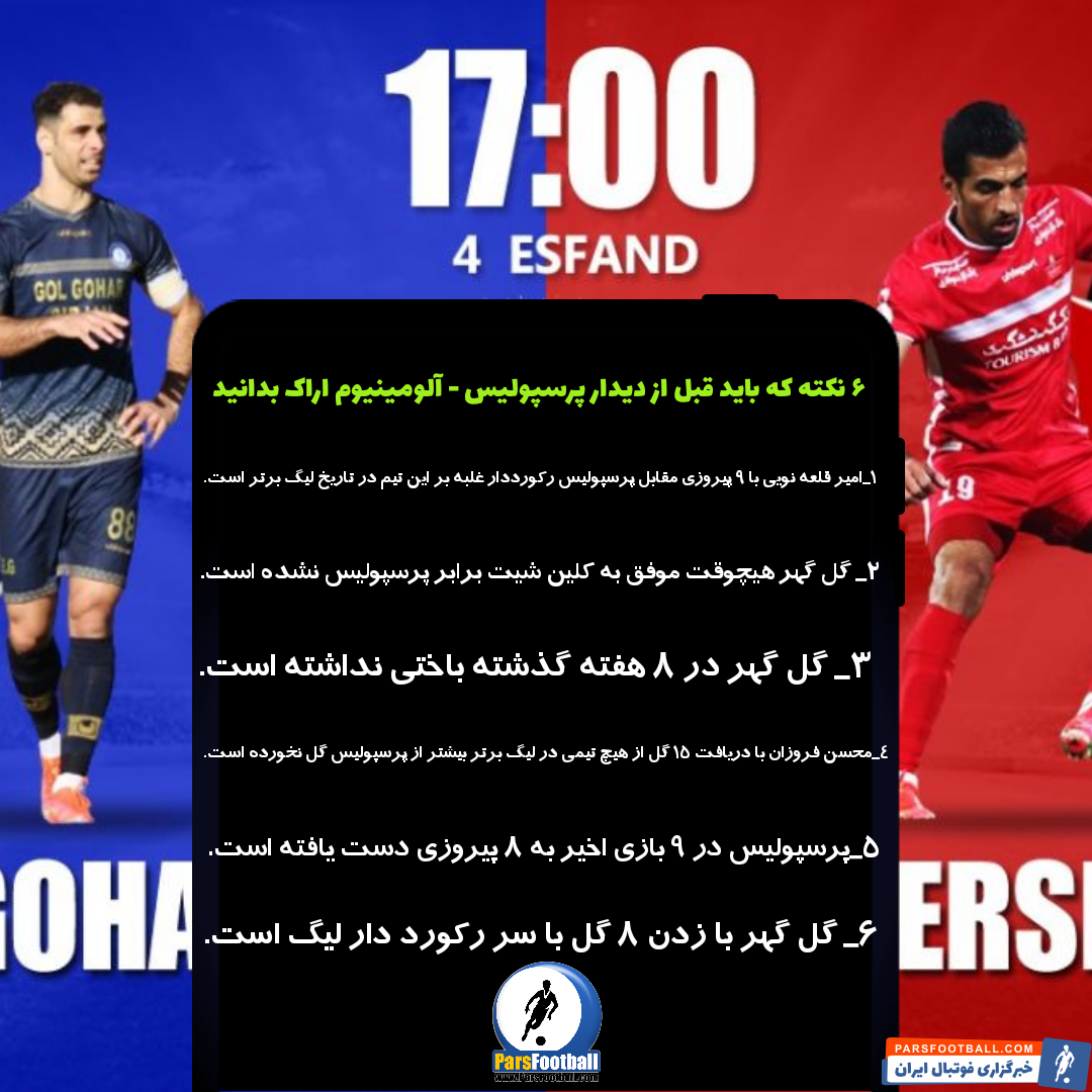 ۲_ گل گهر هیچوقت موفق به کلین شیت برابر پرسپولیس نشده است.