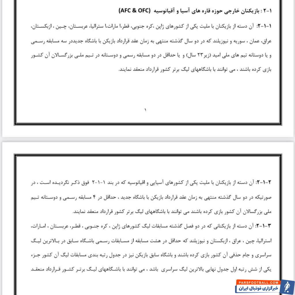 البته در بند ۳-۱-۲ این نامه که مربوط به شرایط حضور بازیکنان آسیایی و اهل قاره اقیانوسیه در کشورمان است قیده شده :