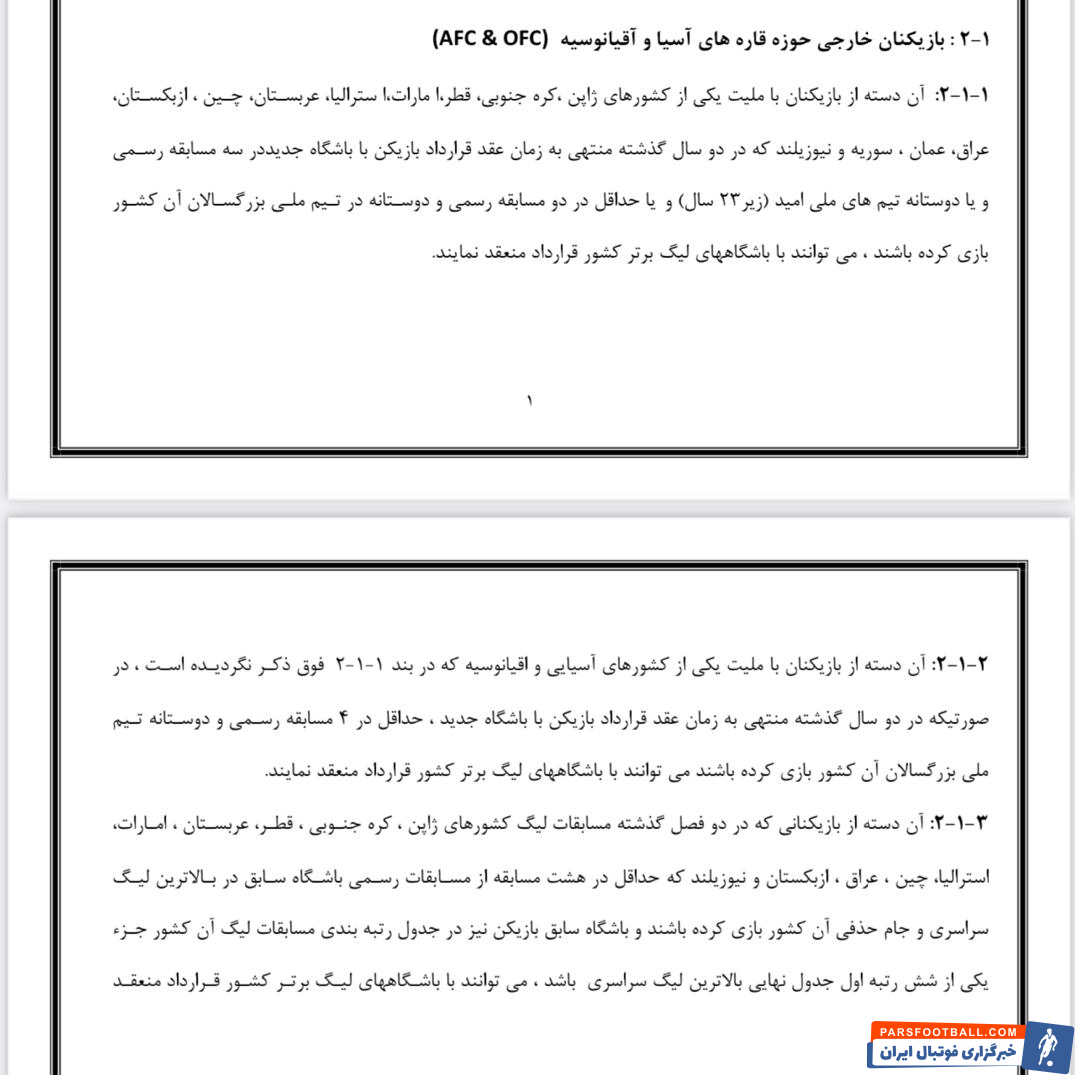 البته در بند ۳-۱-۲ این نامه که مربوط به شرایط حضور بازیکنان آسیایی و اهل قاره اقیانوسیه در کشورمان است قیده شده :