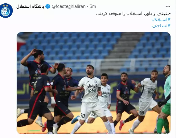توییتر آبی ها بعد از مسابقه امروز با انتشار پیامی، دلیل تساوی مقابل نساجی را در یک جمله بیان کرد و به صورت غیر مستقیم به داوری بازی اعتراض کرد.