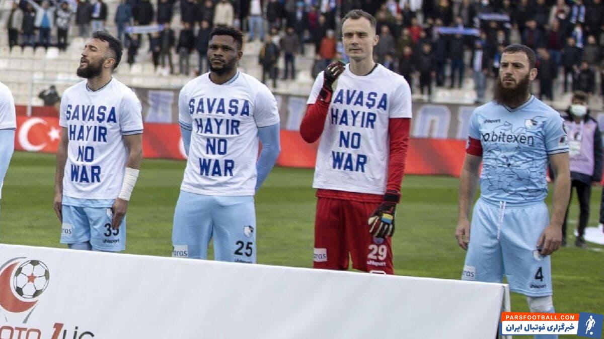 جنبشی که با سکوت ۵ دقیقهای قبل از بازیهای هفته گذشته سری A، نمایش پیامهای ضد جنگ روی اسکوربردهای لالیگا و بوندسلیگا و ورود بازیکنان تیم اورتون به زمین مسابقه برابر منچسترسیتی با انداختن پرچم اوکراین روی شانههایشان آغاز شد، به فوتبال ترکیه هم ورود کرده است.