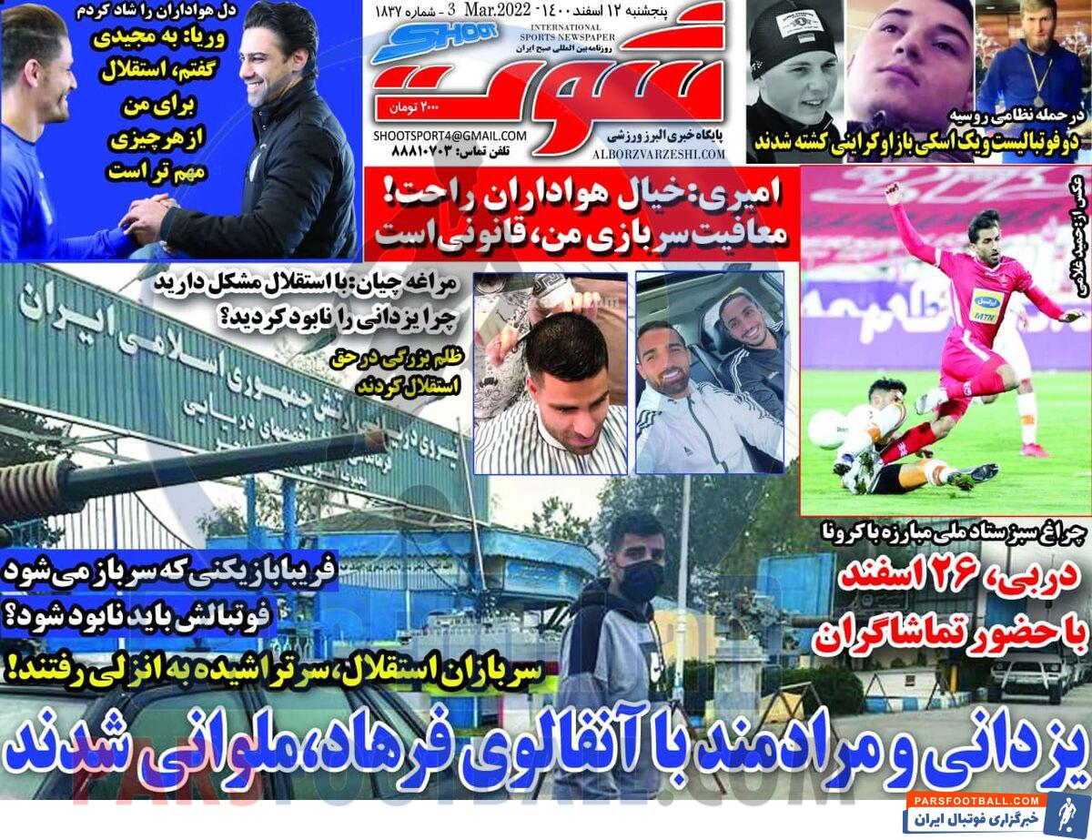 عناوین روزنامه شوت پنجشنبه ۱۲ اسفند ماه به شرح زیر است :