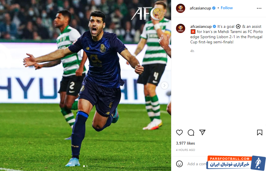 کنفدراسیون فوتبال آسیا نسبت به درخشش مهدی طارمی در بازی بامداد امروز پورتو واکنش نشان داد.